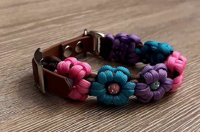 De bloemenknoop is een elegante en verfijnde optie voor hondenbezitters die op zoek zijn naar iets speciaals. Deze knoop heeft een decoratief bloemmotief en voegt een vleugje stijl toe aan de halsband. Hoewel het voornamelijk esthetisch is, is het nog steeds een duurzame keuze voor dagelijks gebruik.